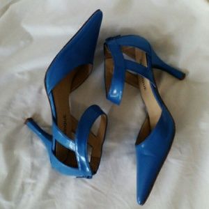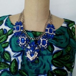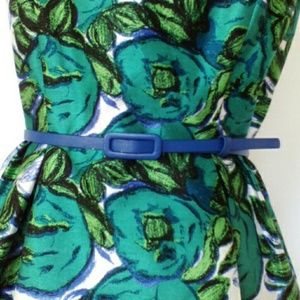 This a beautiful floral print dress, it is a soft green color, outline in a Royal blue , with small section of white in between the floral print, It has a pencil size belt in blue, this dress looks great on. It is in great condition, Add some blue shoes and blue accessories and you are good to go to any party.