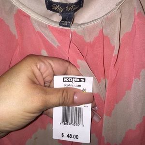 Tan/salmon pink chevron quarter sleeve dress