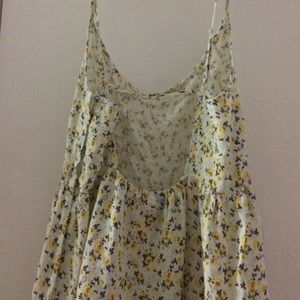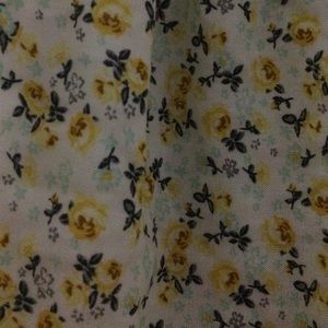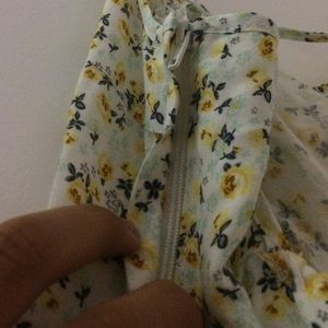 White with yellow flowers, zipper on the side of dress, opening in the back