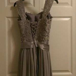Embellished bust floor length gown with a corsetted back. [PLEASE READ!!] Size on dress says an 8 but I got it altered to fit a size 2! It is a size 2!!!