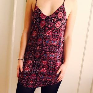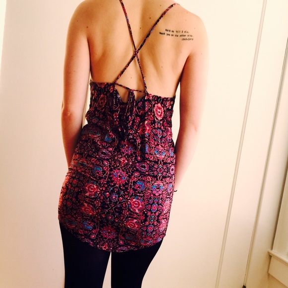 💠Open back crisscross with ties. 💠Plunging v-neck in the front depending on how you adjust the tie in the back. 💠Pink blue black and white pattern. 💠Can be worn as a dress or long shirt depending on your measurements and how you adjust the ties. 💠Wore this to a music festival perfect choice!! I sometimes also pair it with tights/leggings and knee high black boots to create a layering effect. Especially if you're like me, trying to tune into my inner Monica from friends😏