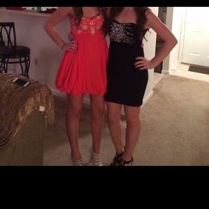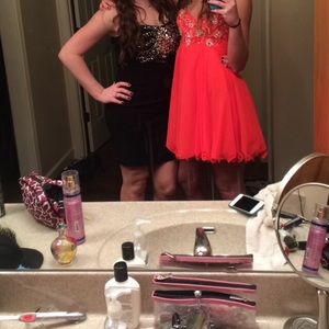 Orangish peachy colored dress with design. Only been worn twice. In very good condition. No rips or tears.