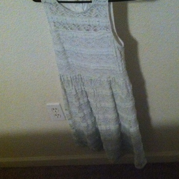 White and Lacey really cute just never new what to wear it with its a zip up dress! In good shape!!!!