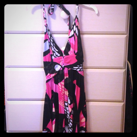 Beautiful colored dress!! Ties up at the top with a loose bottom! Perfect dress for summer with a day out with your friends or just staying at the house.