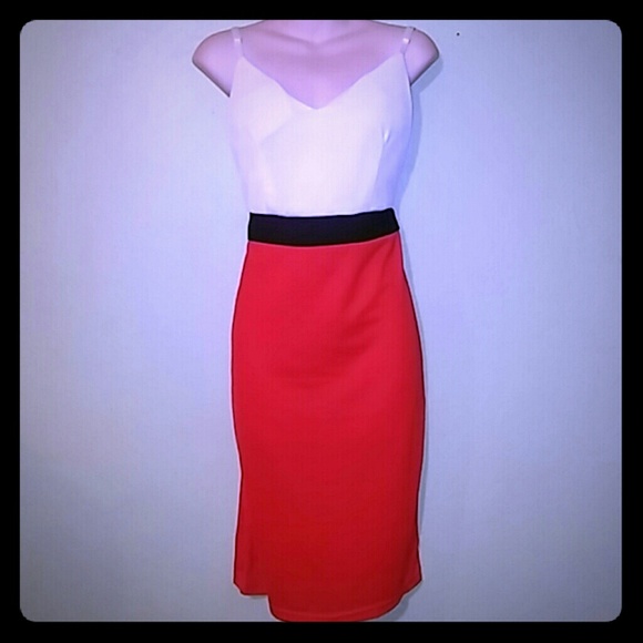 New wihout tag, Long knee high Red&White Dress. Has built in bar pads to it.