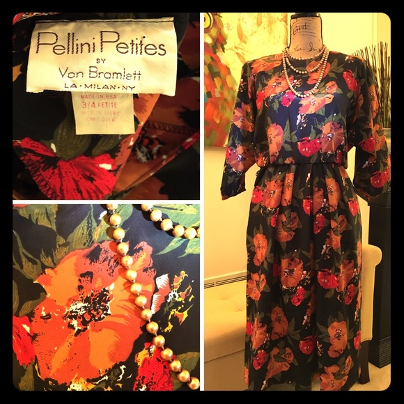 Vintage dress with floral print! (Necklace pictured is not for sale). Size 3/4 petite.