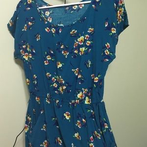 Beautiful blue dress and fights straight but hugs mid high. Also comes with pockets. No tag on it but size medium worn a few times