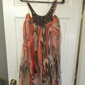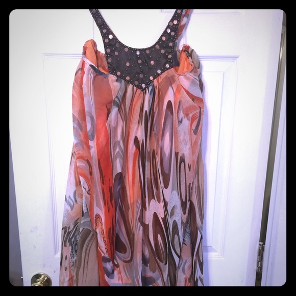 Nice chiffon summer dress, can be worn for a special Occassion or just because dress it up or down. Worn only one time.