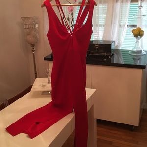 Long red dress.open in front and back.very good material.worn only once impecable condition.It is amazing.