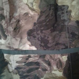 Modern sheath dress with a purple/brown watercolor flower print. Dress is more different shades of purple with a bit of brown. Zips up the back. Darts in front. Never worn. Machine washable. 100 polyester. No wrinkles. 36 inches neck to hem. Very smart and professional looking without being boring.