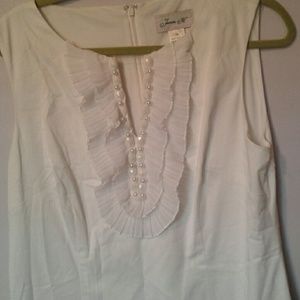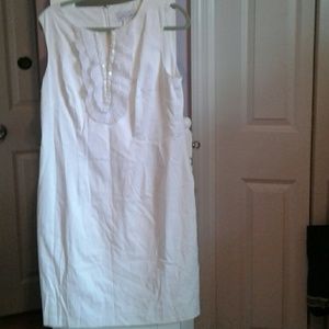 Beautiful white Jessica Howard dress. detailed bead and ruffle neckline. Darting in front. Back zip. 97% cotton. 38 inches neck to hem. Perfect for a summer date.