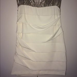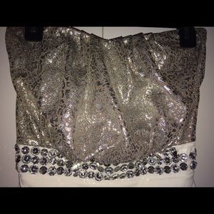 Silver& white strapless dress, missing a few gems, easily replaceable, cute, comfy, worn once