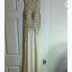 Jeweled top half, long bottom. Open back.