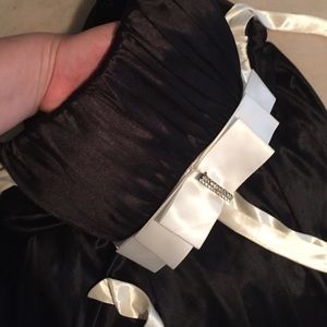 Black dress with white waste band, silk material, about 30 inches long, 20 inches wide (both lengths are estimated) size large originally bought from HEB.