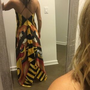 Bright colored silky dress. Perfect for a beach vacation cover up or a night on the town