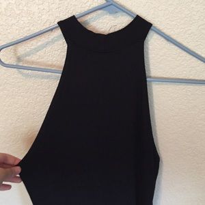 Black silk halter top tight fitting dress. Slit in one side of dress