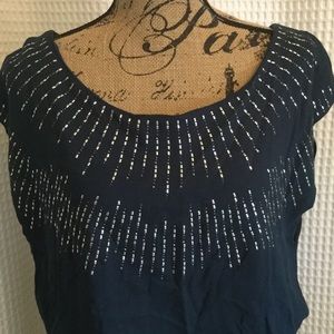 Dress with pockets with nailhead accents on top. Scalloped sides to highlight legs for a sexy, casual look.