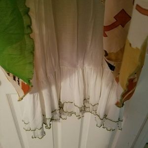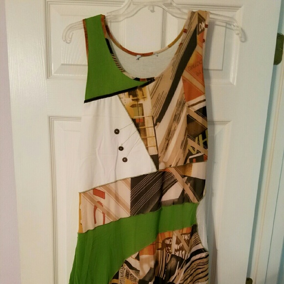 This dress is from Europe. Very unique and confortable. I cut the tag out because it bothered me. I wear a 16 and this dress for perfectly. On one side, you can ratchet up the skirt using the cord underneath the skirt. I accidentally broke the string...needs minor repair - not visible unless you lift the skirt.