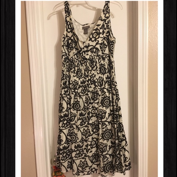 Sweet flowered black and white summer dress, lined. Hits mid calf. Worn only one time for a wedding.