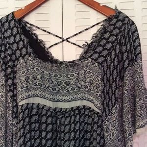 Free people dress. Black and ivory. Black slip inside. Machine wash. Gently used, good condition