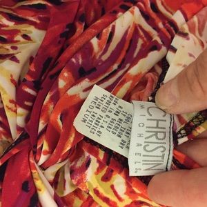 Adult ladies size Medium dress. Red/yellow/black/white. Stretch material. V-front and back. Very comfortable for summer wedding. Worn once. Bought from 6pm.com.