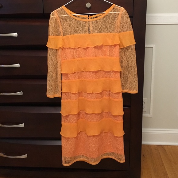 Beautiful lace dress. Never worn. Still with tag. Bought it for a wedding, but never went. From pet free and smoke free home.