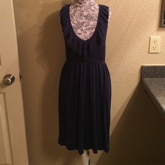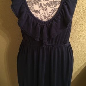 NAVY blue deep v neck, racerback tshirt dress. Worn but has a lot of life left. No holes, just some pilling in the fabric.