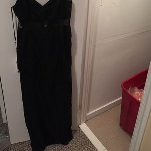 Beautiful evening dress for any dress up occasion black tie event even - spaghetti strap- sheer with beads under breast line made by Nahdree 75% triacetate, 25% polyester balance : 100% nylon