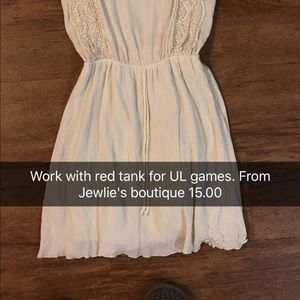 Sheer on top. Wore it to football games with color tank under. Super cute. Has a tie on it. Bought from boutique