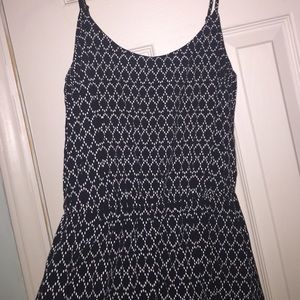 Slim fit, spaghetti top skater dress. Flowy and perfect for a summer wedding. Black and white patterned.