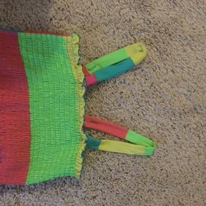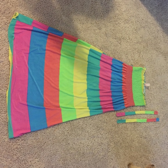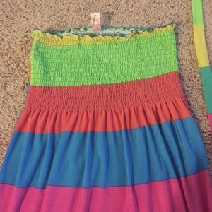 Beautiful. Striped multicolored dress can be worn with or without straps Great for summer or winter with a cardigan