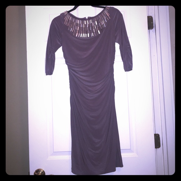 Great guest of or event dress! Jersey long sleeve with embellished neckline!