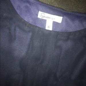 Gorgeous royal blue dress, with a mini skirt attached with sequences all over. Hits just above the knee
