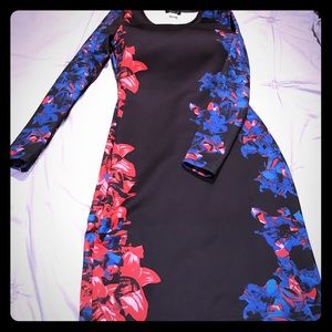 Fun for work or play, black with flowers that stand out, very comfortable dress. :)
