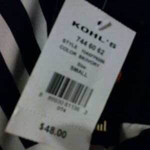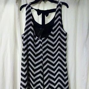 Ivory and black striped, knee length tank dress. Semi open back w/ 2 bows. Brand new.. Tags still attached.
