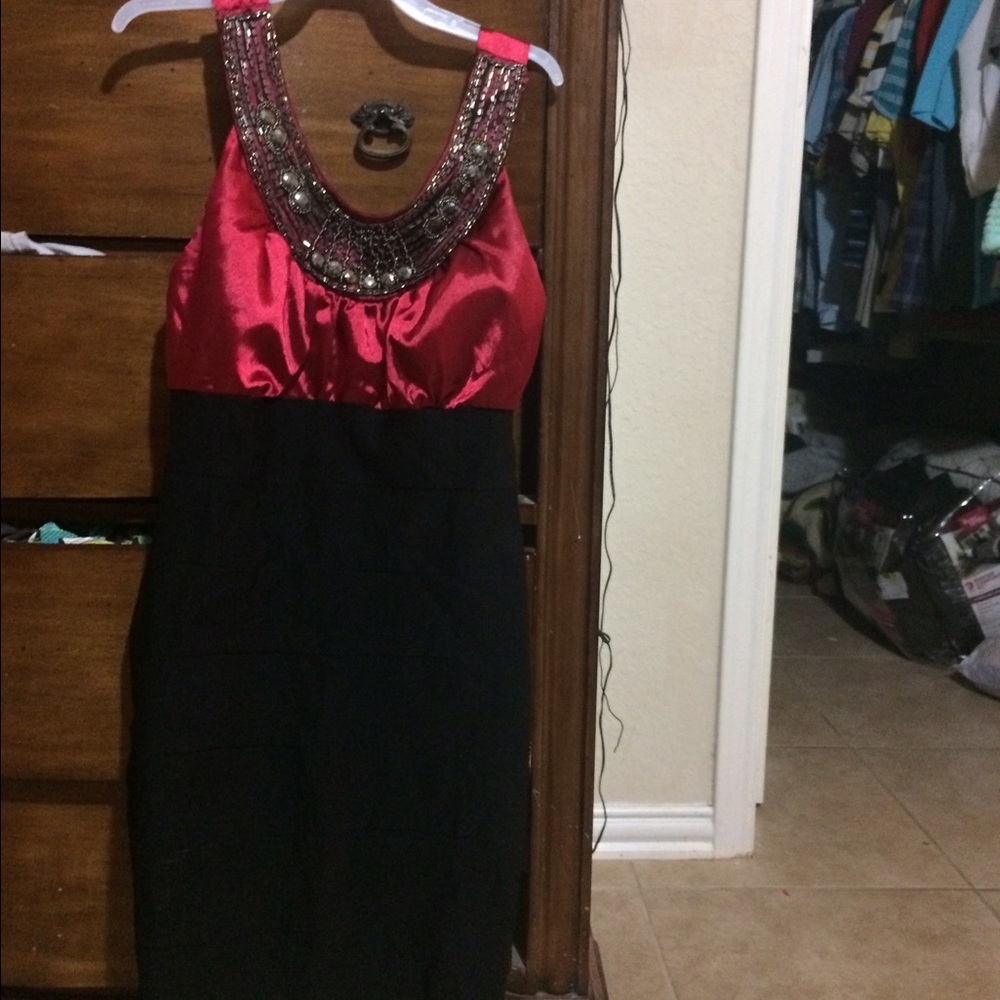 Red/black dress knee length with pretty sequence on the top and front shoulder straps
