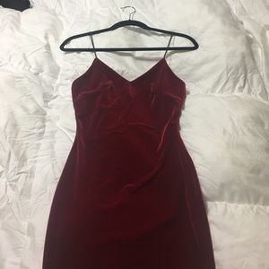 Red crushed velvet dress! Skinny black straps! Like new, only worn once. Me trying it on in the dressing room is the only picture I took in it but its very comfortable and flattering for all shapes.