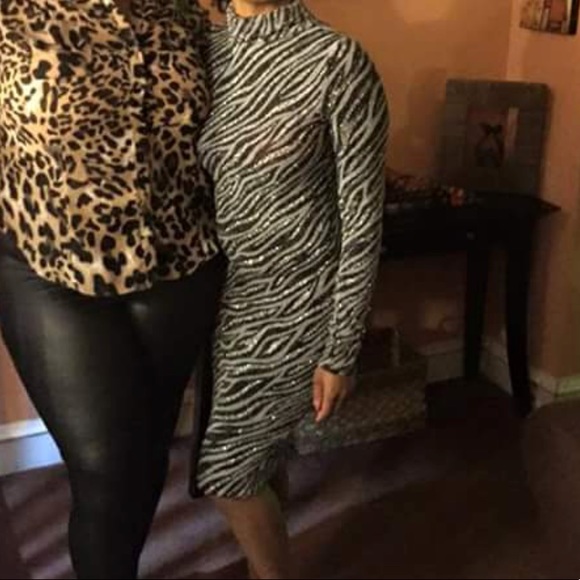 Dress, body con, midi, long sleeve, black with silver sparkles, new never worn in original bag Angel Brinks. I finally found a picture of the dress on someone!