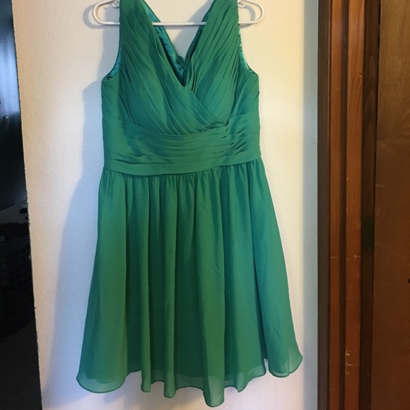 Green dress no stretch silky inner lining, padding in chest area.
