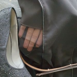 Sexy strapless dress with small mesh area on each side with a cute black belt that has copper color metal on the front. Dress is in great condition only worn once and looks fabulous on!! Shoes not included.
