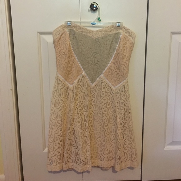 Side zipper. Strapless. Lace material. Fully lined. Perfect condition.