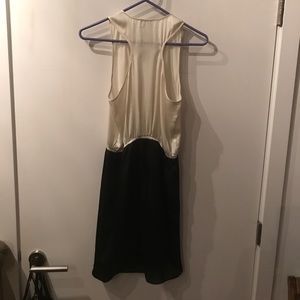Silky black and white dress. Elastic around the waist and tulip flap. Previously loved. Very lightweight.