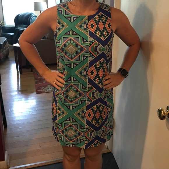 Color block geometrical pattern dress