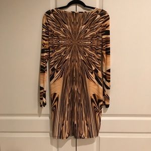 This long sleeve fitted dress is just WILD!!! It screams sexy! The material has give and was never worn. Color pattern is shades of gold and black.