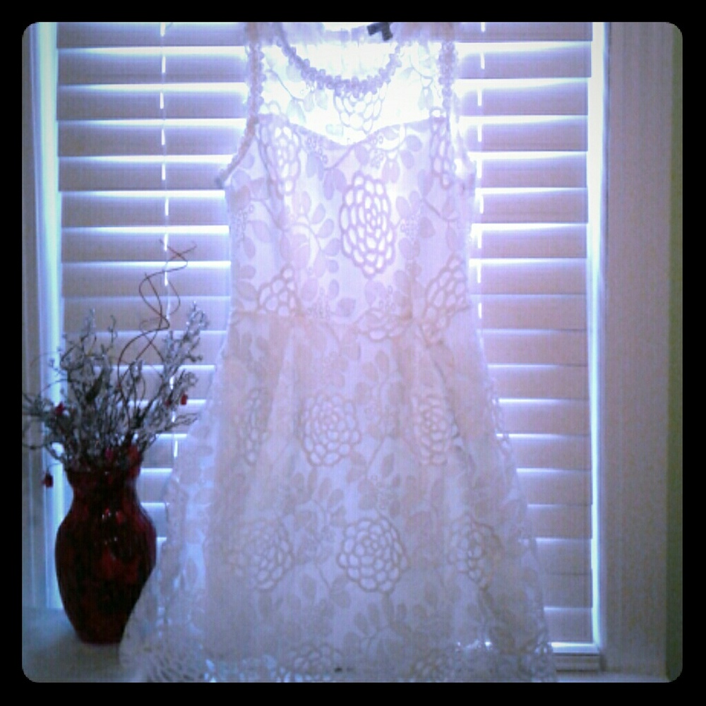 Gorgeous lace dress. It's fully lined n sets just above the knee.