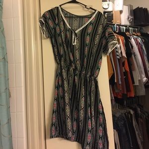 Dress with a mixture of colors selling because it’s a little short I have long legs only worn once very comfortable.