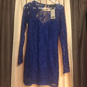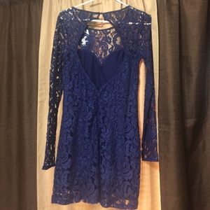 Lace Navy Blue Long Sleeve Dress