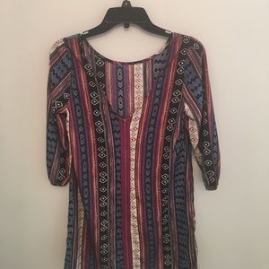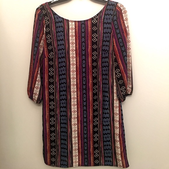 Multi color. Three quarter sleeve. V back with zipper all the way down