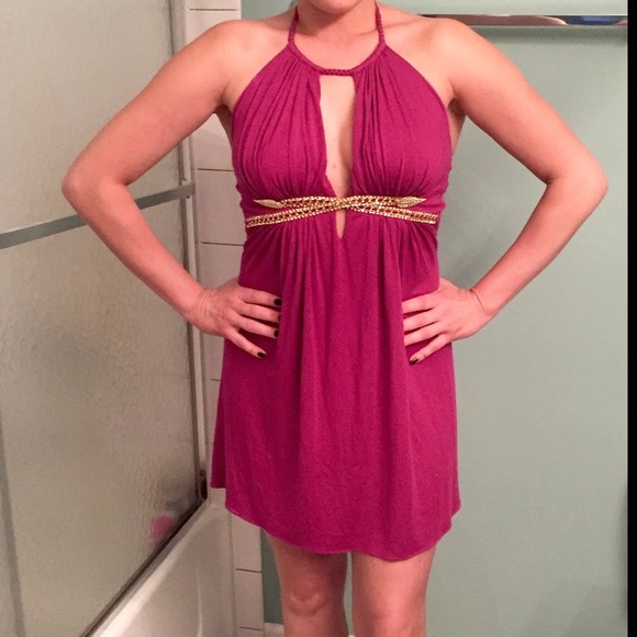 Beautiful rhinestone embellished Sky dress, size S. All rhinestones are in place and very shiny. The color is a burgundy/ wine color