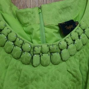Beautiful lime green dress, has silk lining underneath, only used 1 time for a wedding. Pet and smoke free home.